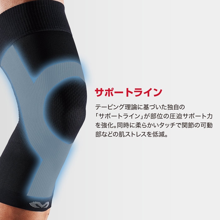 テーピング理論に基づいた独自の「サポートライン」が部位の圧迫サポート力を強化。
