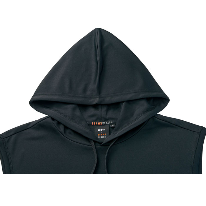 吸汗速乾のバックホールドメッシュを採用したフード付きのノースリーブシャツ。
