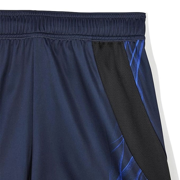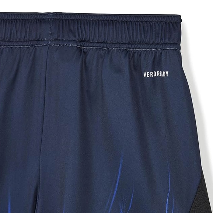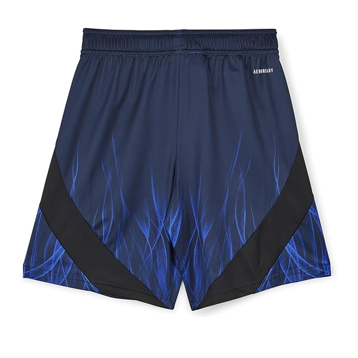 日本代表チームが一つの炎になってうねりを上げて燃え上がる。チームのホームカラーのブルーをベースに、日本の力強さを映し出すかのような、うねりを上げて燃えるハンドペイントの青い炎のグラフィックをあしらった、日本代表のホームショーツのジュニアバージョン。