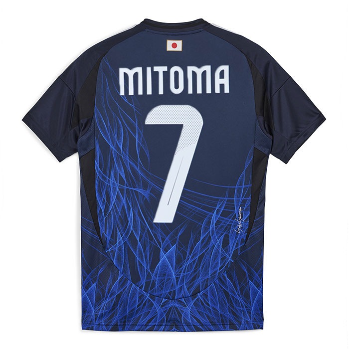 日本代表チームが一つの炎になってうねりを上げて燃え上がる。チームのホームカラーのブルーをベースに、日本の力強さを映し出すかのような、うねりを上げて燃えるハンドペイントの青い炎のグラフィックをあしらった、日本代表のレプリカジャージー。